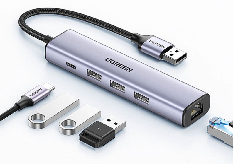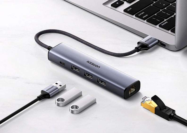 Ugreen's CM475 adapter comes equipped with 3 USB 3.0 ports and an RJ45 port, expanding your PC's capabilities.