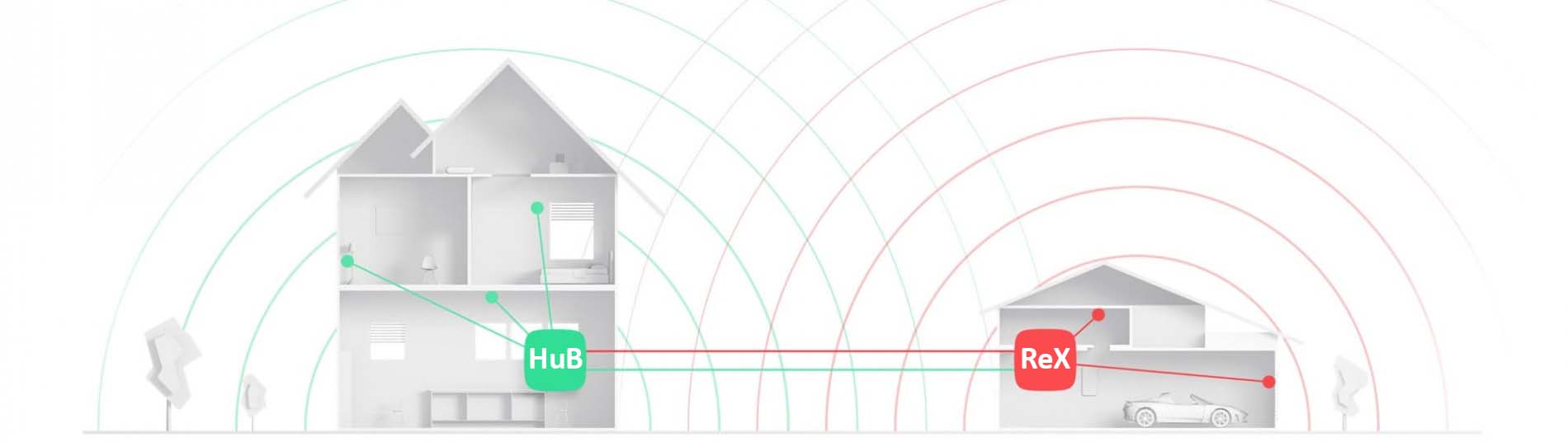 O ReX integra os dispositivos num grupo autónomo dentro do sistema. Caso a ligação com o hub seja interrompida por algum motivo, o repetidor assume o controlo total da situação. Se um dos seus detetores enviar um sinal de alarme, o ReX pode ativar a sirene para chamar a atenção para o incidente e assustar o ladrão.