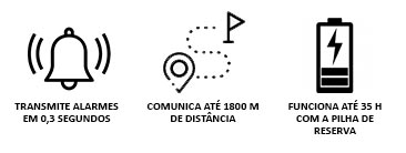 - Tempo de transmissão do sinal de alarme: 0,3 segundos
