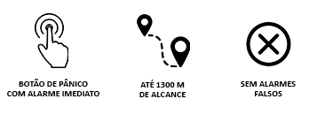 O Botão de pânico notifica imediatamente a empresa de monitoramento de alarmes assim que pressionado. Pode ser configurado para vários cenários: roubos, intrusões, incêndio, urgência de saúde entre outras situações urgentes. O dispositivo suporta 4 tipos de alarmes diferentes.