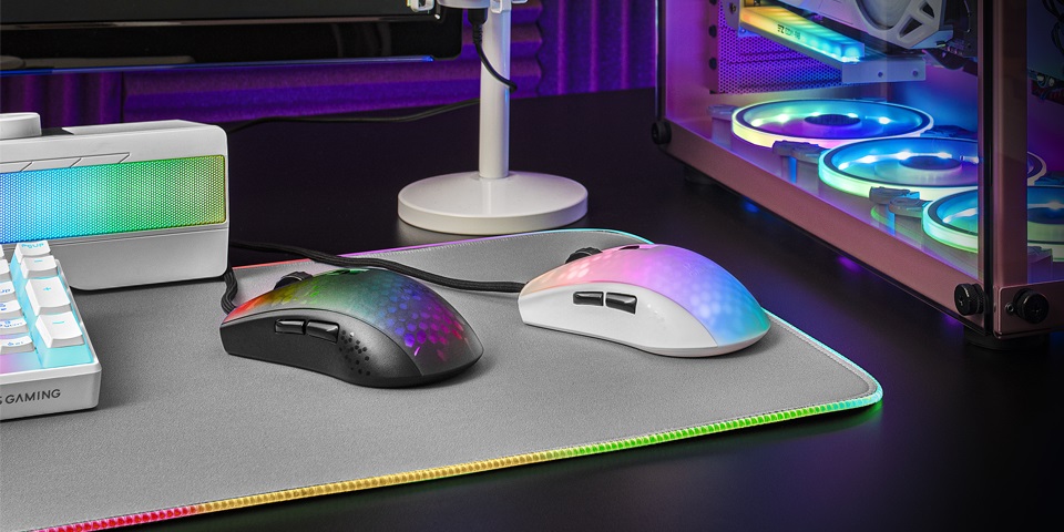 O rato MMR minimiza o seu peso sem exigir furos no seu design graças à sua espetacular estrutura translúcida: uma caixa aerodinâmica com estrutura de suporte interna que minimiza a resistência e o peso do periférico para fornecer um rato de 58g tão rápido e leve que não parece que estás a agarrar um rato.