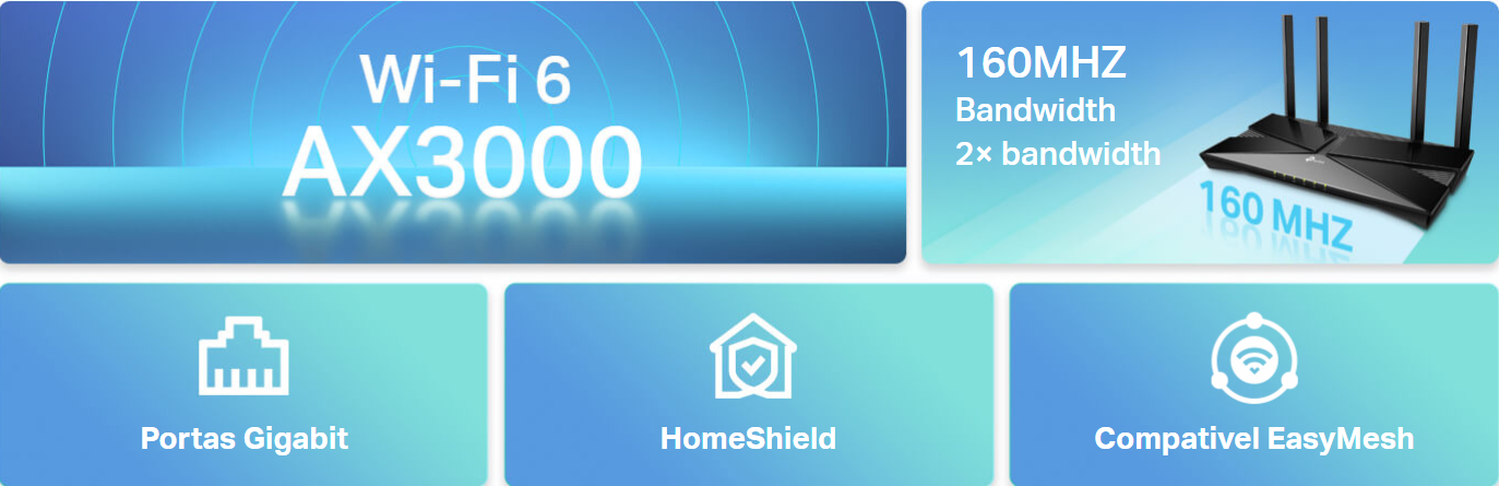Router Wi-Fi 6 Archer AX53 AX3000 Dual Band com 4 Antenas, OneMesh™ e EasyMesh™ - TP-Link
