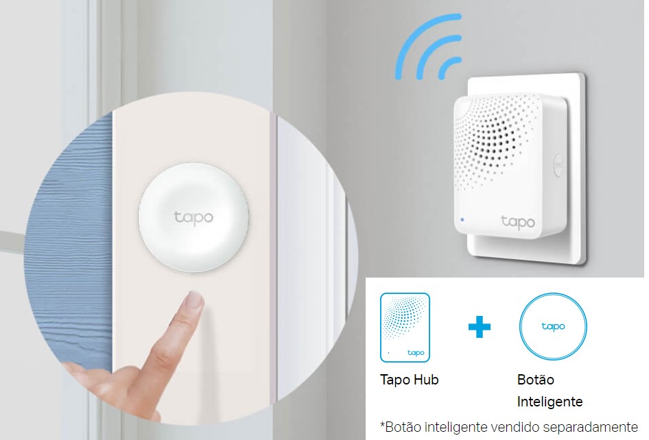 Constrói o teu sistema de campainha inteligente instalando o Tapo Smart Button na tua porta e emparelhando-o com o Smart Hub. Silencia e ativa as notificações com um toque rápido no botão do hub.