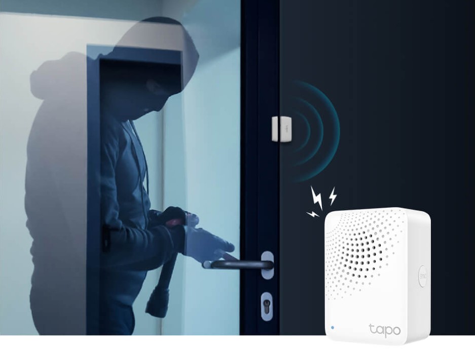Trabalhando em conjunto com sensores de movimento, sensores de porta ou janela e muito mais, o Tapo Hub pode soar uma sirene alta (até 90 dB) para alertar sobre o perigo ou impedir intrusos.